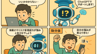 AI×キャリア・就活 ChatGPTを使った自己分析の方法 ChatGPTを使った自己分析方法を解説。効率的で客観的な自己理解を深め、就活やキャリア形成に活かせるプロンプト例も紹介。AIを活用して、自分の強みや弱みを正確に把握する方法を学びましょう。 2025.05.04 AI×キャリア・就活